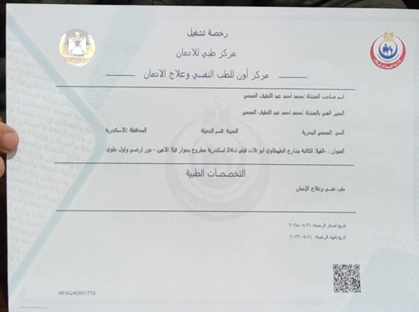في أون سنتر نلتزم بتقديم خدمات الطب النفسي وعلاج الإدمان وفق أسس علمية ومعايير مهنية معتمدة، من خلال فريق متخصص وخطط علاجية مدروسة، داخل بيئة آمنة تحترم خصوصية المريض وتضع سلامته النفسية في المقام الأول.